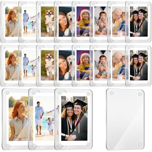 24 delar kylskåpsmagnet bildram dubbelsidig akryl kylskåp magnetisk ram mini klar magnetiska fotoramar ramlös bildram för filmfoton kort stämpel, 6,36 x 9,54 cm