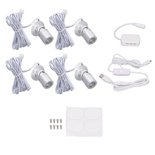 4 St Mini Spotlight LED Lyktor USB Drivna Justerbara Dimbar Accent Lights för Veranda, Vitrinsskåp, Smyckesskåp, Entrékanaler (Silver)