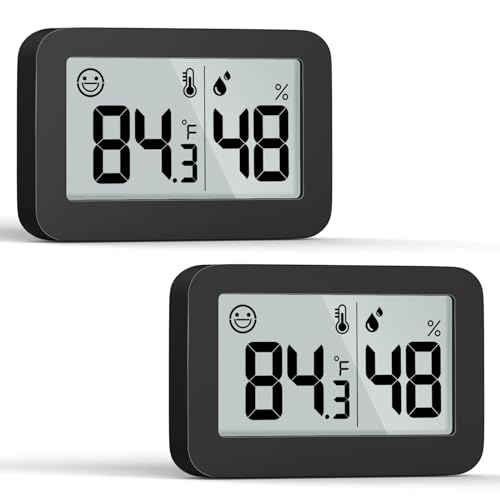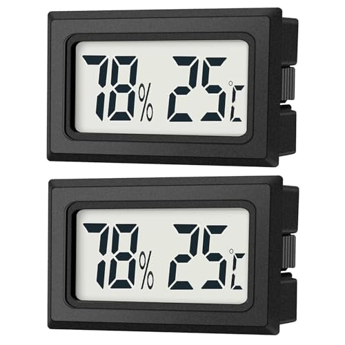 DOOMAY 2-pack mini-hygrometer inomhustermometer, fuktighetsmätare med Celsius (℃), luftfuktighetsmätare digital temperaturmonitor för luftfuktare växthus babyrum källare reptil (2, Svart, 5cm)
