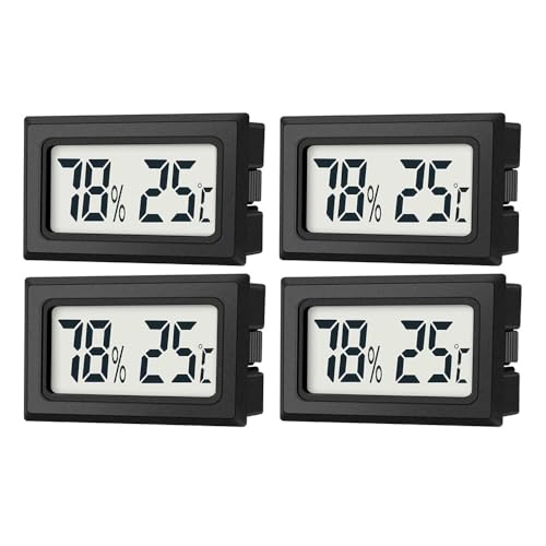 JEDEW Set om 4 mini digital termometer-hygrometer, inomhus temperatur- och fuktighetsmätare för inomhusväxthus luftfuktare reptiler, stor LCD-skärm centigrad ℃ (4)