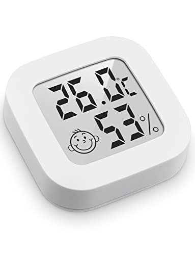 DOOMAY 2-pack mini-hygrometer inomhustermometer, fuktighetsmätare med Celsius (℃), luftfuktighetsmätare digital temperaturmonitor för luftfuktare växthus babyrum källare reptil (4, Vit, 5cm)