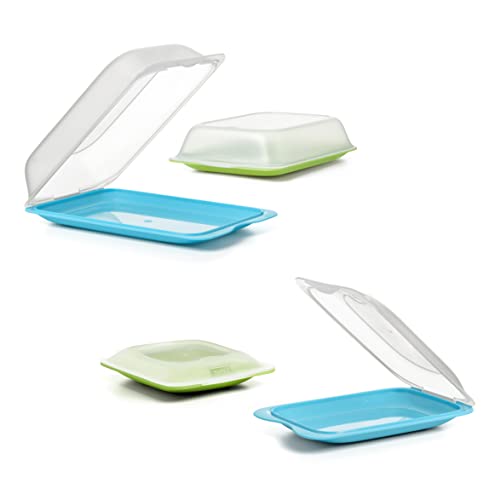 Tatay uppsättning av 4 kallt kött och färska mathållare, 2 MAXI och 2 MINI, BPA fri, återanvändbar, stapelbar, diskmaskin och mikrovågsugn kassaskåp, Grön, Blå