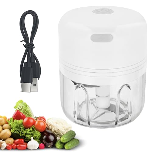 Baxcdyswe Elektrisk kökshackare 250 ml, mini elektrisk mixer, USB multi-uppladdningsbar hackare, 3 blad i rostfritt stål, bärbar liten mixer för kött, frukt, vitlök (vit)