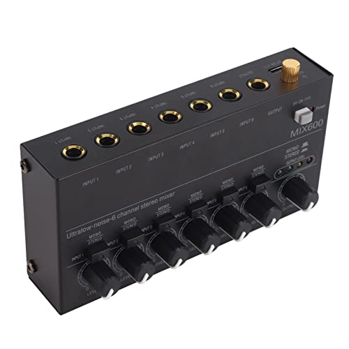 Aveek Mini Line Audio Mixer – 6 kanals liten ljudmixer med stereo/mono-växling och lågbrusdrift för precisionsdelblandning, 1/4 tum TRS-ingång/utgång idealisk för mikrofoner/gitarrer/bas/scen