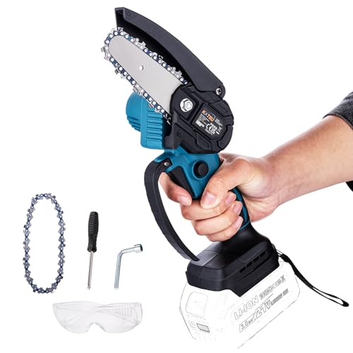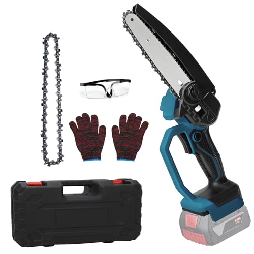 MIRTHBUY Mini motorsåg sladdlös 18 tum, motorsåg elektrisk borstlös, uppgradering smörjsystem, passar för Ma-ki-ta 18 V, bärbar såg för klippning av trädgård (utan batteri och laddare)