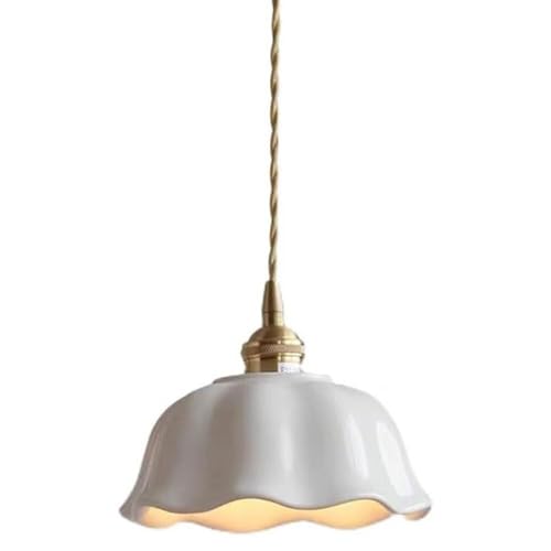 Hertl Brass Home Ceiling Hanging Lamp, Modern Mini Ceramic Pendant Light, White Lampshade Interior Decoration Chandelier, Bedroom Bedside Balcony Hallway Bathroom Suspended Light Fixture