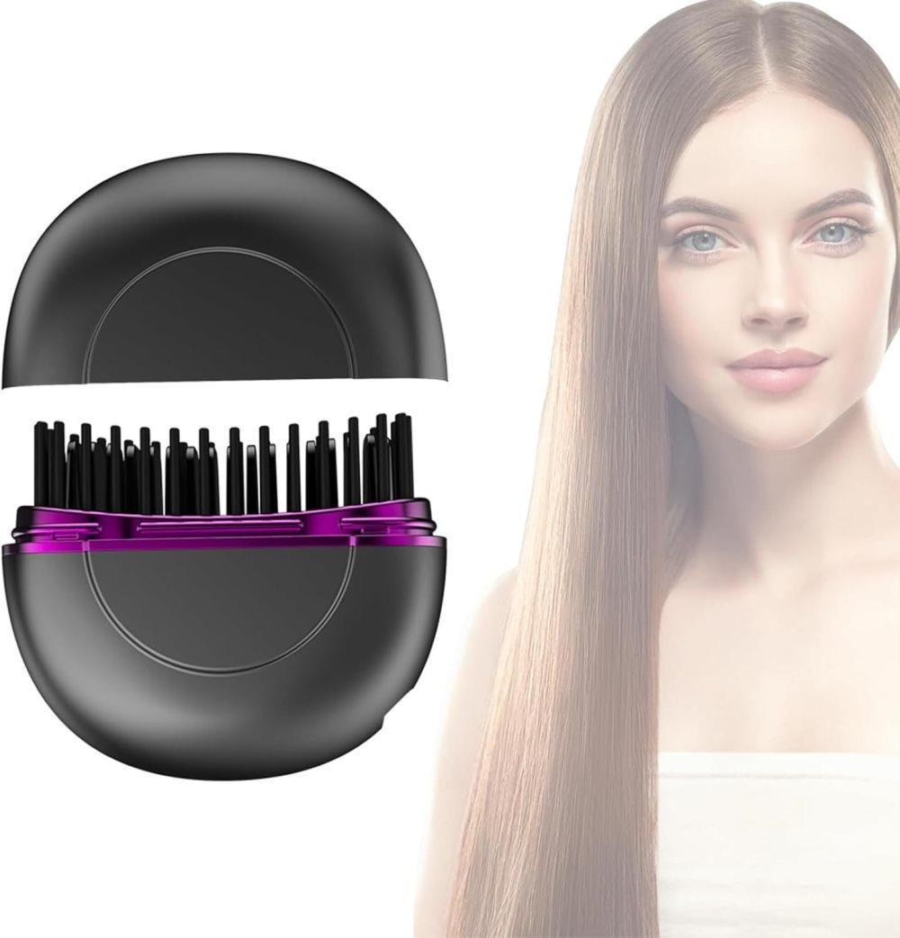 OBEST Trådlös utjämningsborste, mini plattång hårplattång borste, bärbar fluffig kam för kvinnor, 2-i-1 slät hårborste, med 4 justerbara temperaturer, 140 ° C-200 °C