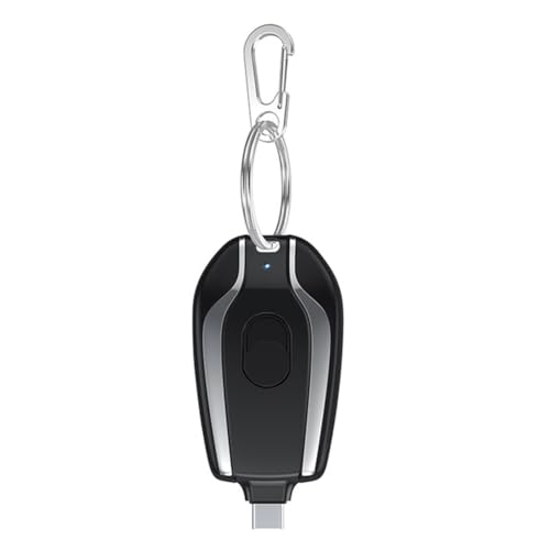 Mini bärbar powerbank, 1 200 MAh, nyckelring, externt reservbatteri för mobiltelefon, typ C, svart