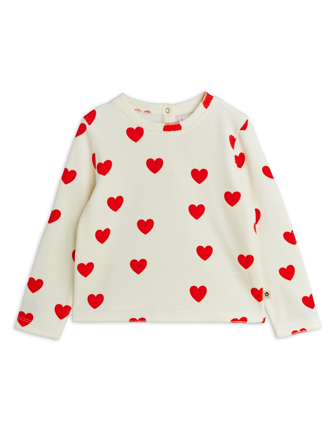 Mini Rodini Hearts Aop Velour Top - Cream - 80/86