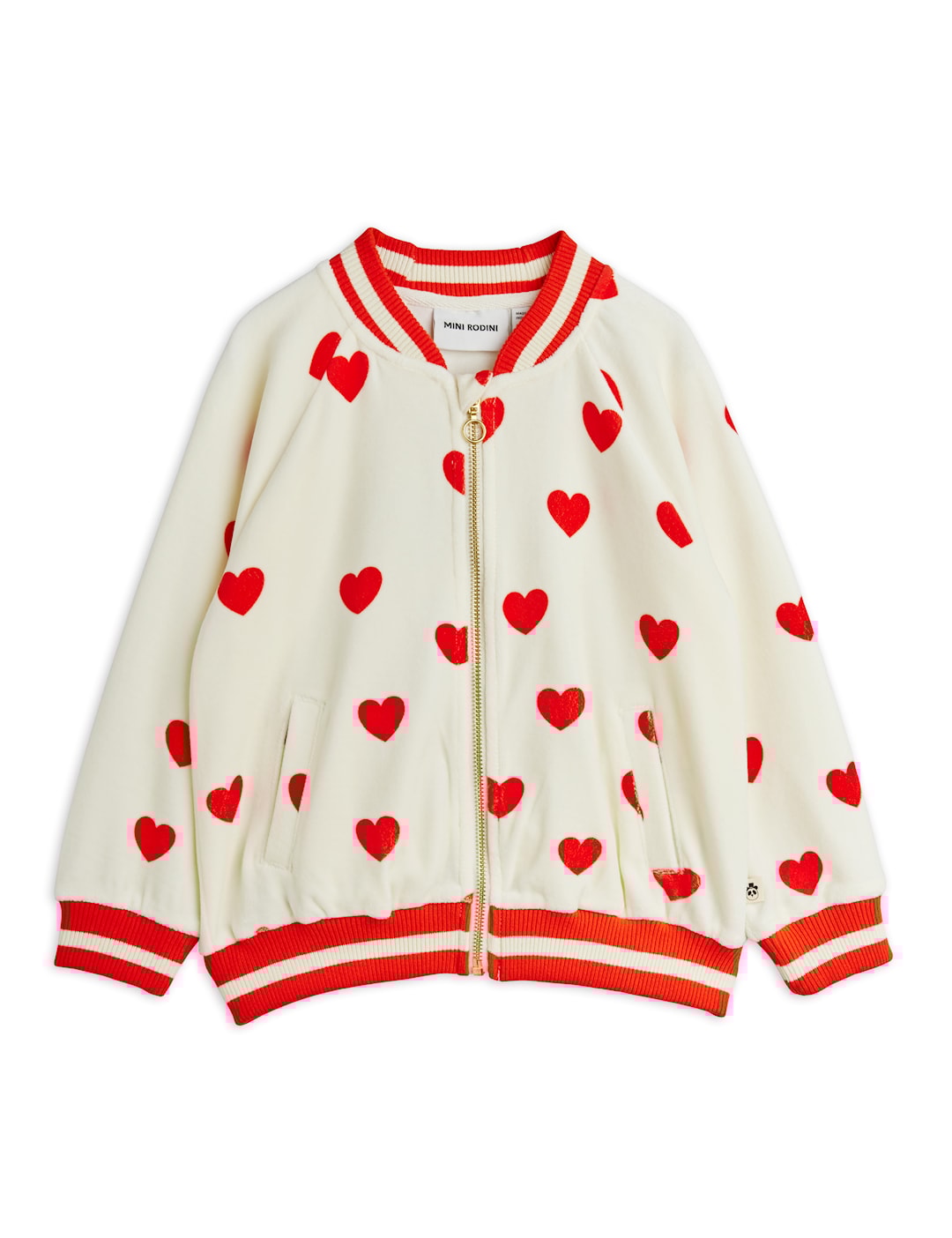 Mini Rodini Hearts Aop Velour Baseball Cardigan - Red - 140/146