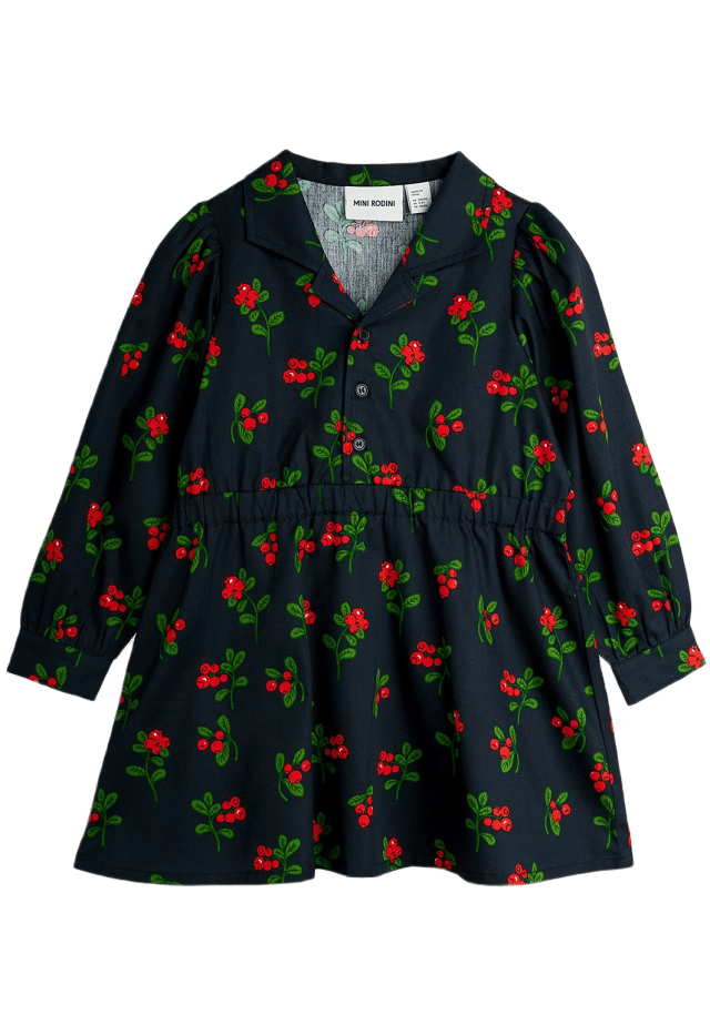 Mini Rodini Lingonberries Vävd Långärmad Klänning Svart