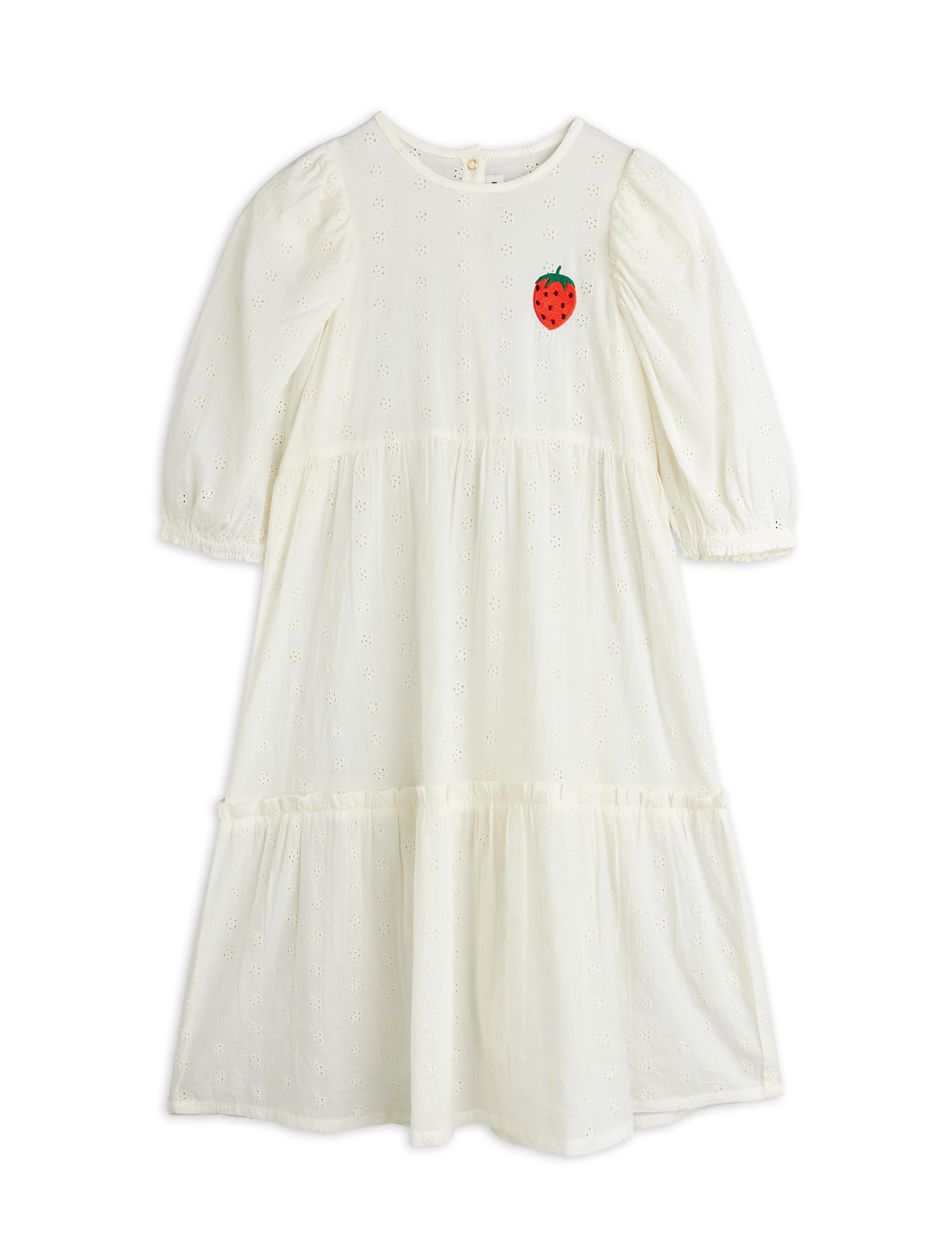 Mini Rodini GOTS Strawberry Klänning Med Puffärm White White 104/110 cm Vit 92/98 cm kvinna