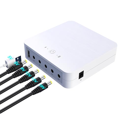 Shanqiu USV Mini UPS oavbruten strömförsörjning för router, modem, kamera med ingång AC utgång USB 5 V DC 5 V 9 V 12 V 2 A (37 Wh)