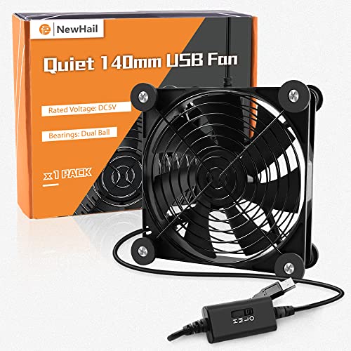 Newhail 1st 140mm Mini USB Fan Computer Fan Multi-hastighetskontroll, reduktionsvärme för router, spelkonsol, TV-låda, mottagare, modem, DVR, PlayStation, AV-Cabin