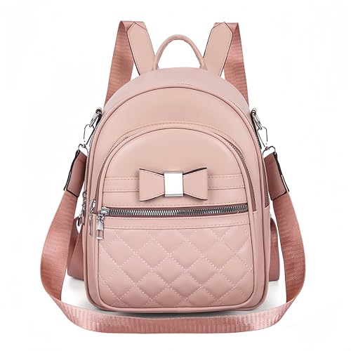 FUNSEED Mini rosett ryggsäck för kvinnor PU-läder söt vardaglig dagväska, Rosa, Small, Söt