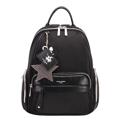 David Jones - Liten ryggsäck för dam mode stadsmode - handväska axel flicka nylon mjukt PU-läder - mini skolväska multificka dragkedja dragkedja - mode ryggsäck modern trendig designer - svart, svart,