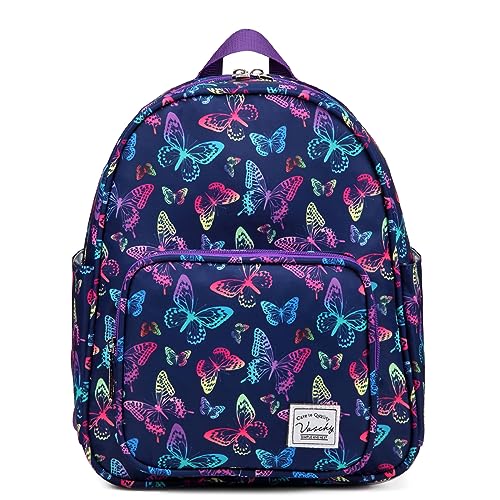 VASCHY liten ryggsäck för kvinnor, söt mini lätt nylon reseryggsäck handväska för tonårsflickor, LILA FJÄRILAR