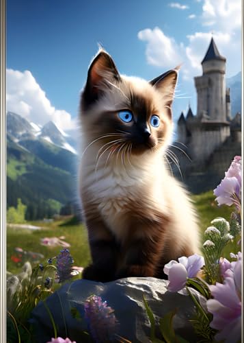 SIAMESE KITTEN GERMAN CASTLE * KITTY CAT LOVE - Cute Mini Journal Diary Scratch Art Doodle Jot Blank Pad: ֍ 5x7~Greeting Note Card Size֎ EXPRESS ... Shower Holiday Childrens Party Favor Gift