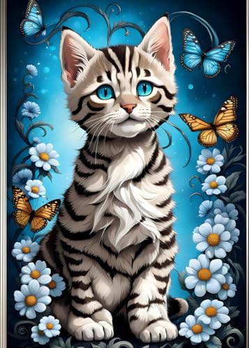 GRAY TABBY KITTEN & BUTTERFLIES * KITTY CAT LOVE - Cute Mini Journal Diary Scratch Art Doodle Jot Blank Pad: ֍ 5x7~Greeting Note Card Size֎ EXPRESS ... Shower Holiday Childrens Party Favor Gift