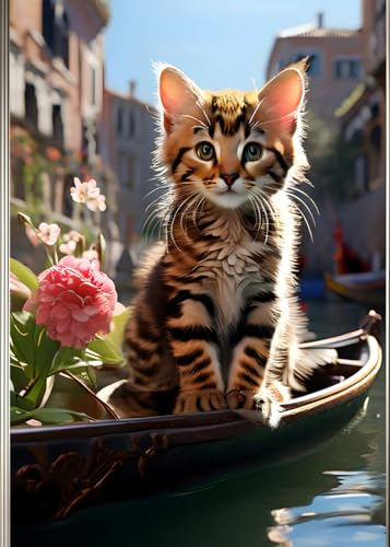 SAVANNAH KITTEN ITALIAN GONDOLA * KITTY CAT LOVE - Cute Mini Journal Diary Scratch Art Doodle Jot Blank Pad: ֍ 5x7~Greeting Note Card Size֎ EXPRESS ... Shower Holiday Childrens Party Favor Gift