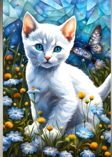 WHITE KITTEN & BUTTERFLY * KITTY CAT LOVE - Cute Mini Journal Diary Scratch Art Doodle Jot Blank Pad: ֍ 5x7~Greeting Note Card Size֎ EXPRESS YOURSELF ... Shower Holiday Childrens Party Favor Gift