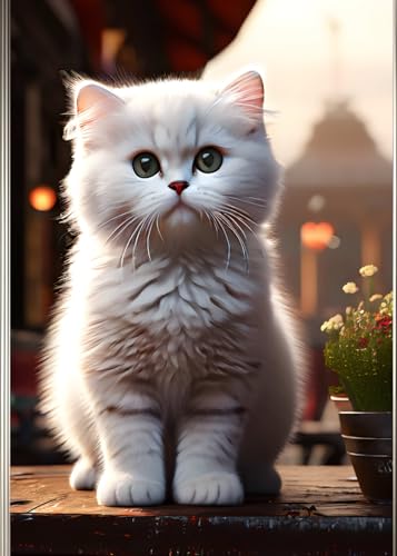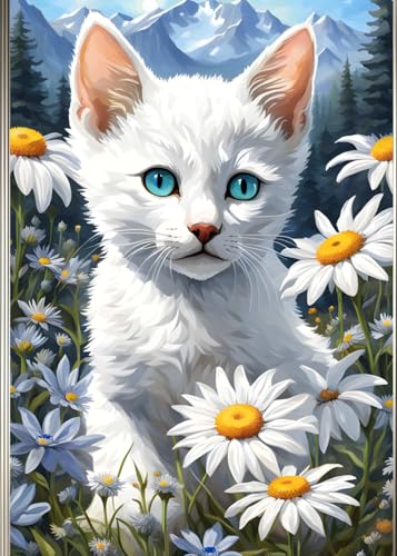 WHITE KITTEN & SHASTA DAISY MOUNTAIN * KITTY CAT LOVE GREETING NOTE CARD - Cute Mini Journal Diary Scratch Art Doodle Jot Pad: ֍ 5x7 ~ 24 page/12 ... Bridal Shower Holiday Feline Party Favor Gift
