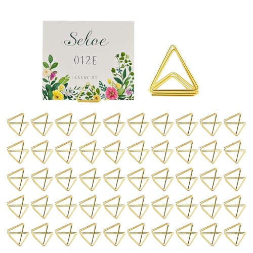 Werownsgso 50 stycken triangulära bordskorthållare, metall menykorthållare, mini platskort hållare fotohållare, dekoration korthållare för bröllop födelsedag baby shower restauranger
