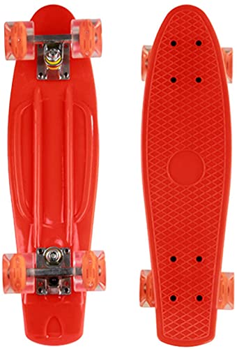 22inch komplett skateboard, mini cruiser med LED-ljus upp hjul för nybörjare tjejer barn pojkar ungdom nybörjare,Red