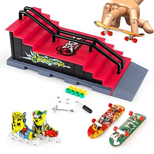 KETIEE Mini Finger Skateboard Ramp Set, Fingerboard Skateboard Skatepark däck truck Fingerboard Ramp kit fingerleksak med rampparker för barn födelsedagspresent, 1810-6E Uppgradering