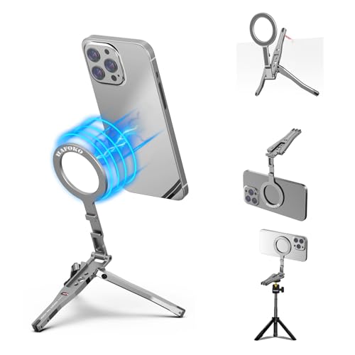 Magnetisk Ficka Telefon Stativ Aluminium Mini Skrivbord Vikbar Magnetiskt Stativ Handhållen Kompatibel för iPhone 16/15/14/13/12 Plus Pro Max Lättviktare Telefon Tripod Stativ Resa