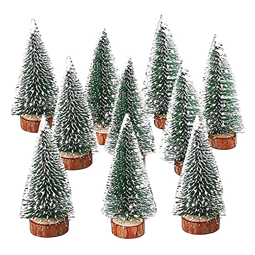 10 stycken mini gröna granar mini julgran, skrivbord julgranar, frostade sisalträd med träbas, naturtrogen julgran med snöeffekt för bordsdekoration, gör-det-själv-juldekoration, skyltfönster