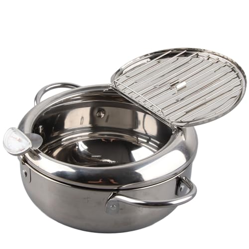 Mini Fritös Gryta, Japansk Stil Tempura Stekpanna med Termometer, Hushållsbar Stekpanna i Rostfritt Stål med Kallt Handtag Kompatibel med Gasspis, Induktionsspis (Liten storlek 20 cm)