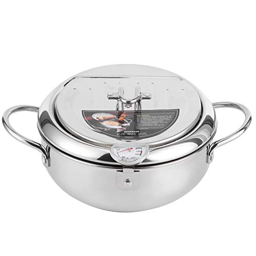 Mini Fritös Gryta, Japansk Stil Tempura Stekpanna med Termometer, Hushållsbar Stekpanna i Rostfritt Stål med Kallt Handtag Kompatibel med Gasspis, Induktionsspis (Stor storlek 24cm)