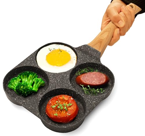 Joeji's Kitchen Stekpanna för 4 ägg, mini pannkakspanna, non-stick delad stekpanna, perfekt för att laga hälsosamma stekta ägg, hamburgare, omelett och mer, med mindre olja