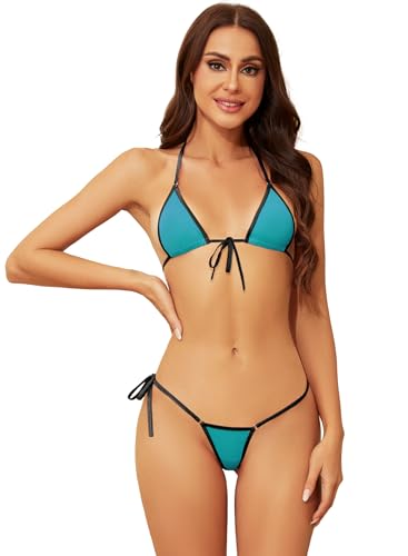 Dadress G-string mini bikini set sexig baddräkt mikro bh bikini underkläder för kvinnor, Aquagrön, one size