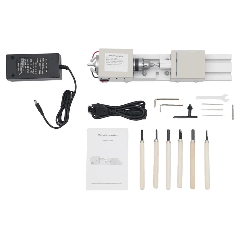 Mini svarv, 7-hastighets justerbar, inkluderar 6 gravyrverktyg,Silver