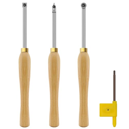 CDBP Mini karbid tippade träsvarvverktyg trä svarv verktyg 3 st fräsar detaljer finish tillverkad av rostfritt stål med trähandtag och 3 st matchade hårdmetallskärare