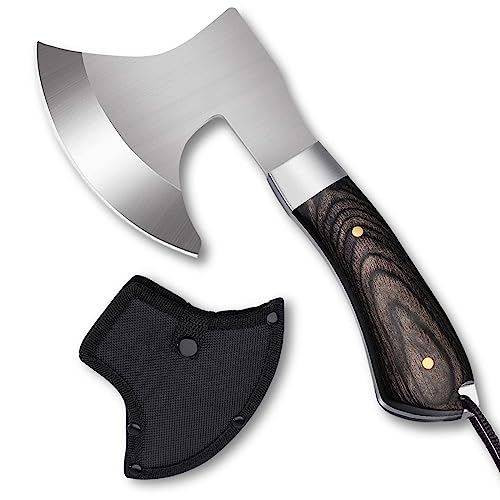 Omesio Mini yxa överlevnad liten utomhus yxa, handvivel full tang 19,3 cm, överlevnad camping yxa trähandtag, robust (C043)