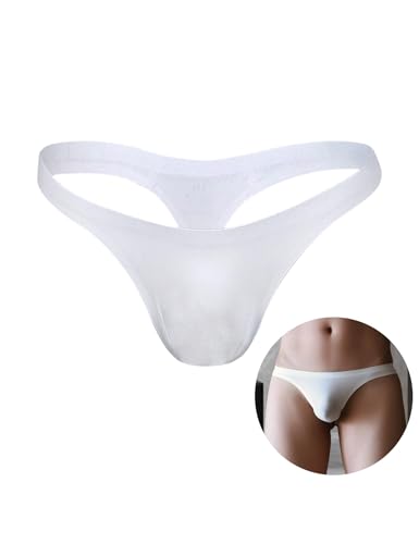 ohyeahlady Stor storlek stringtrosa herr silke sömlös mini string utan etikett Jockstrap trosor tanga sexig chic het bikini mini trosor midja droppe under kläder G-stringtrosor herr underkläder, Vitt