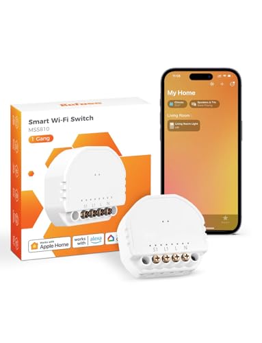 Smart Mini WLAN-reläbrytare, 1 väg 1 växlad ljusbrytare kompatibel med Apple HomeKit, Alexa & Google Home, 2,4 GHz, 250 V 10 A, 1 st (neutral tråd krävs)