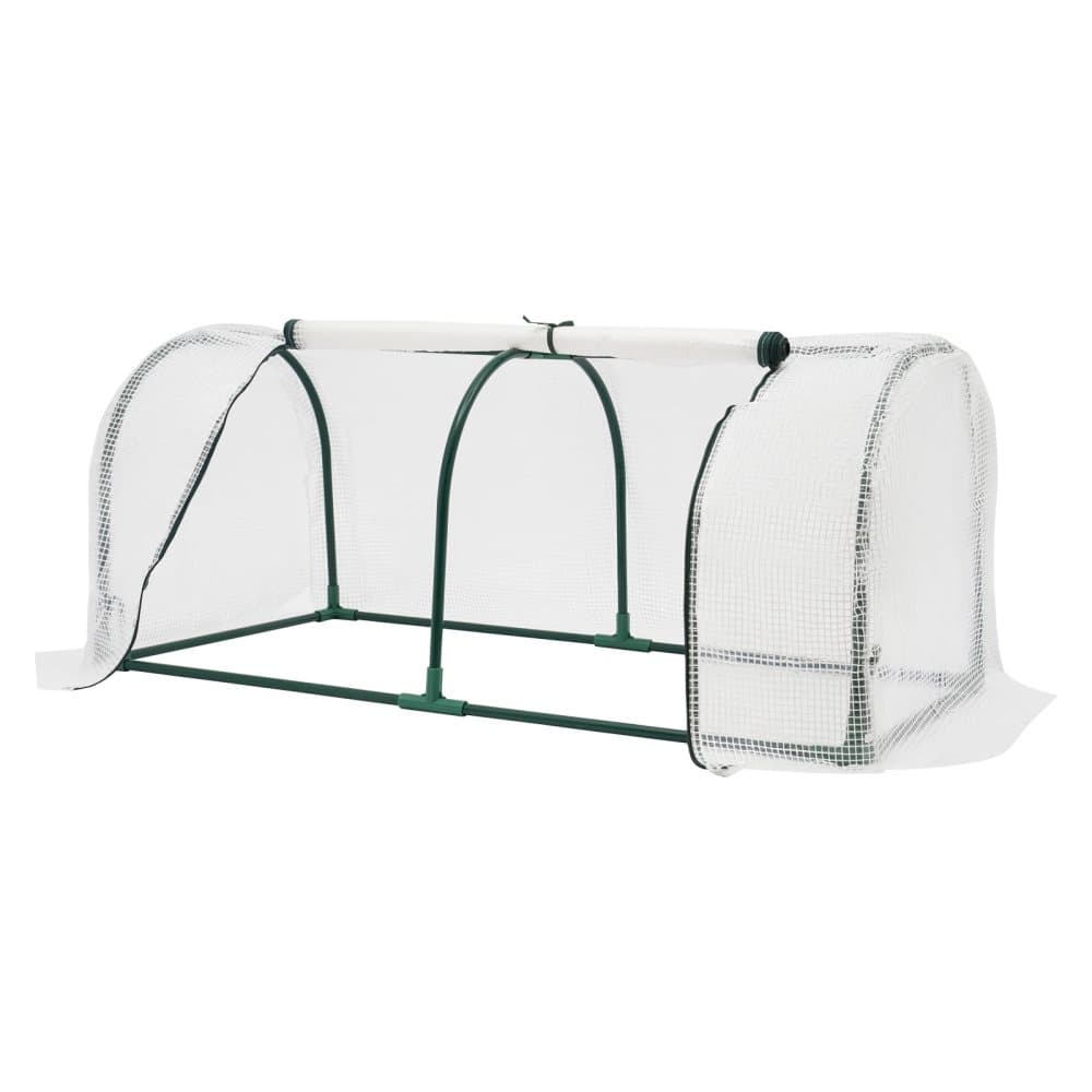 Outsunny Mini balkongväxthus trädgård växthus med planteringspåse och förstärkt plastöverdrag, vinterväxthus med rulldörr, för grönsaker, blommor, 89 x 50 x 152