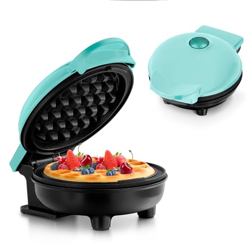 Baker's Friend våffeljärn, 11 x 5,5 cm mini våffeljärn, rund miniatyr våffeljärn multifunktionell barn och vuxna, litet belgiskt våffeljärn, våffeltillverkare, köksredskap, aqua