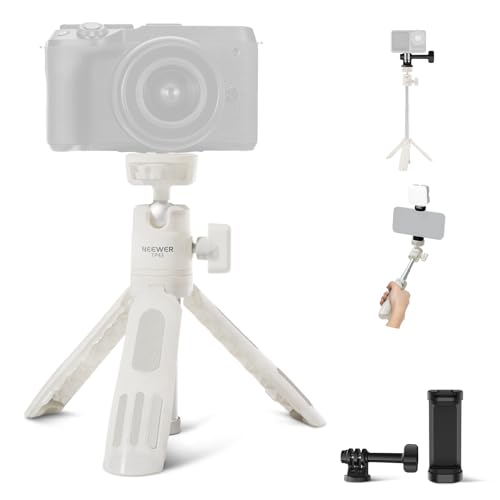 Neewer Mini stationär selfiepinne stativ kompatibel med iPhone GoPro Insta360 DJI med 360° kulhuvud upphöjd centralaxel, metall bärbar liten skrivbordskamera webbkamera mobiltelefon vlogstativ, TP43