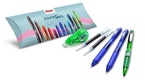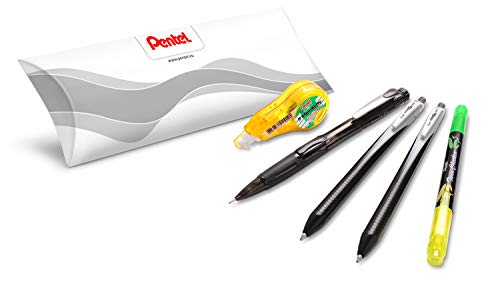Pentel Skola/Kontor/Smart Working Set (2 rullar Energel Slim BL437 svart, 1 stiftpenna 0,5 mm, 1 vitt miniband, 1 x överstrykningspenna)