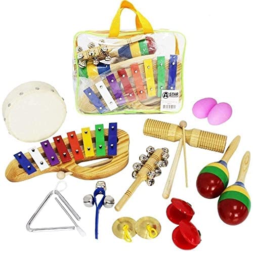 A-Star 13st Musikinstrument Slagverk Presentset med förvaringsväska, inkl Xylofon & Shakers, Roligt Miniband för nybörjare