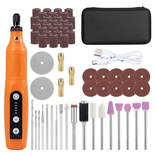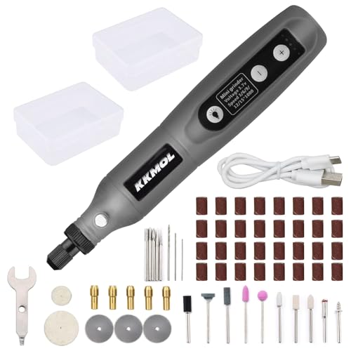 Carehabi Multifunktionsverktyg, batteri, med LED-ljus, 3-växlad graveringsanordning (5 000 – 15 000 rmp), 3,7 V miniborr med 58 tillbehör set för borrning, gravering, polering, slipning, rostning