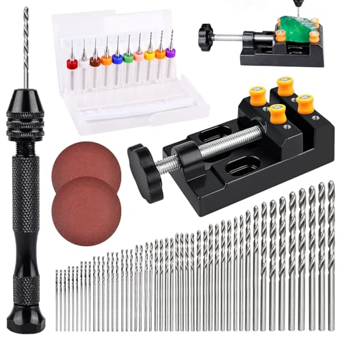 WholeFire 60 stycken handborr, 0,3–1,2 mm PCB-miniborr och 0,5–3,0 spiralborr med precisionshandstiftsskruvstock, svarvverktyg för trä, smycken, plast etc