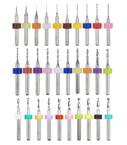 HUAZIZ 30 st PCB-bitar för mikro borrbits miniborr 0,1 mm till 1,0 mm och 1,1 mm till 2,0 mm och 2,1 mm till 3,0 mm