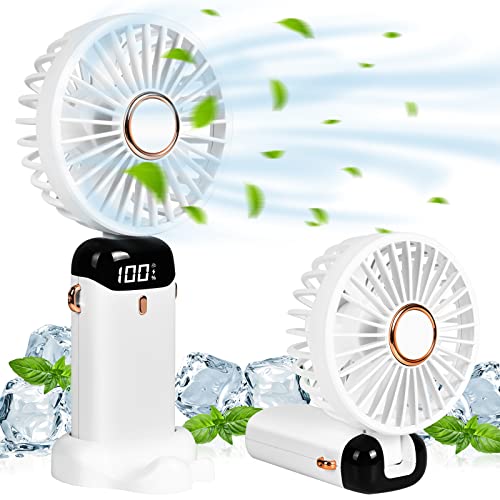 IEGrow Handfläkt bärbar minifläkt USB uppladdningsbar [2-9 timmar] 3 hastigheter uppladdningsbart batteri för resor hemma (vit)