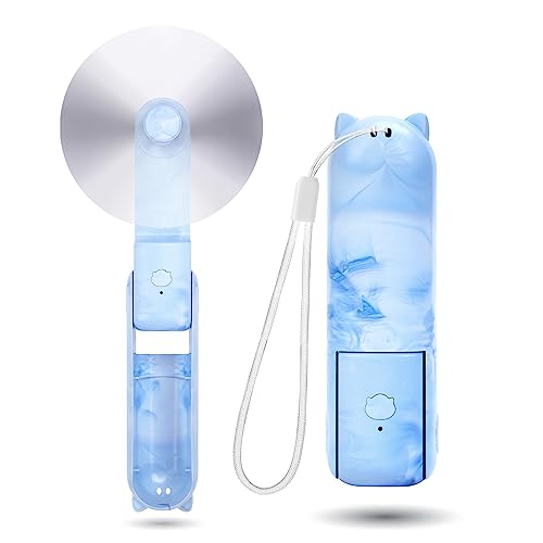 JISULIFE Handhållen bärbar minifläkt med 3 hastigheter, ultratunt USB-uppladdningsbar personlig ficka ögonfransfläkt för flickor barn kvinnor män resa blå